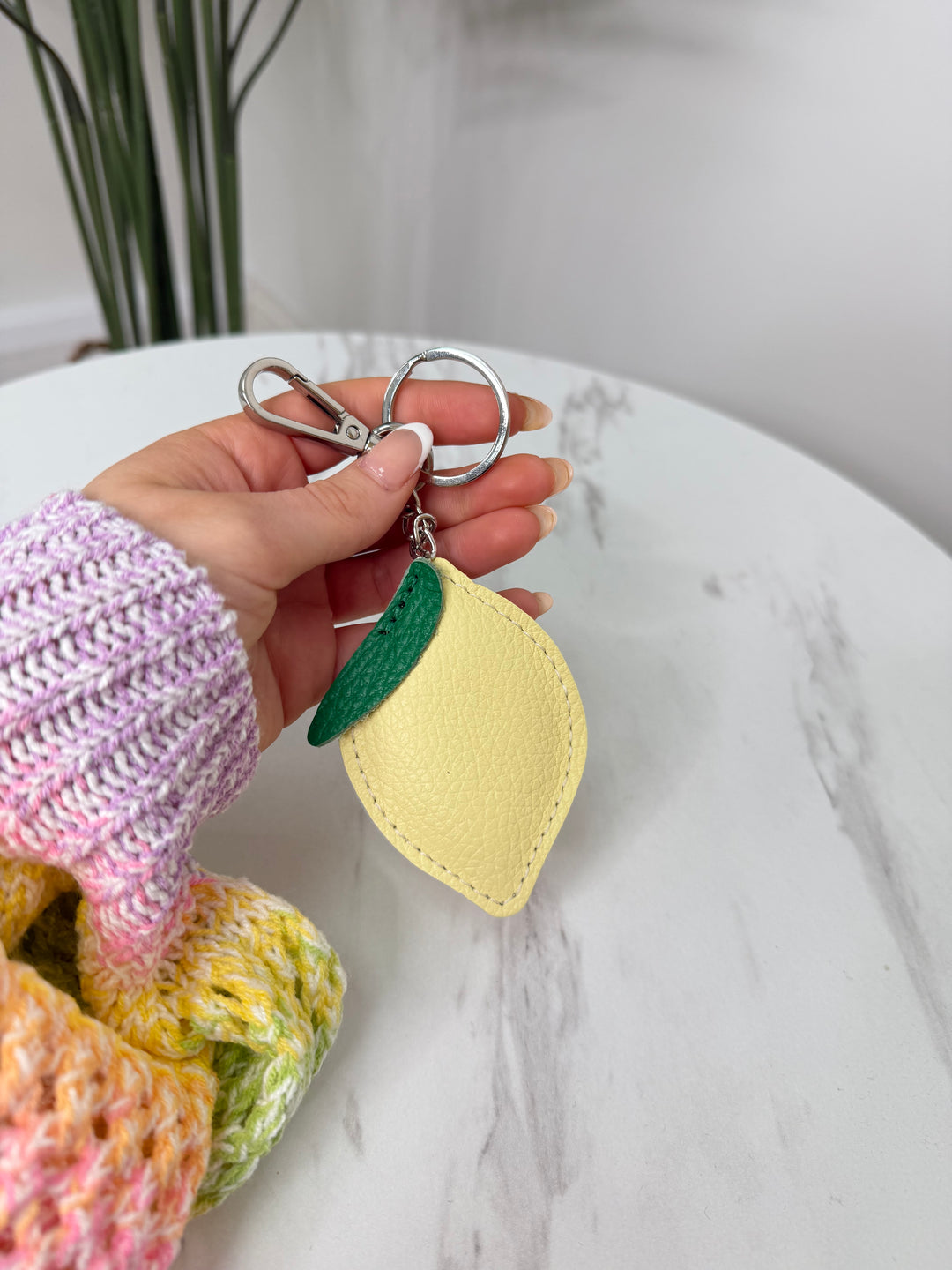 Real Leather Lemon KeyRing - Lemon