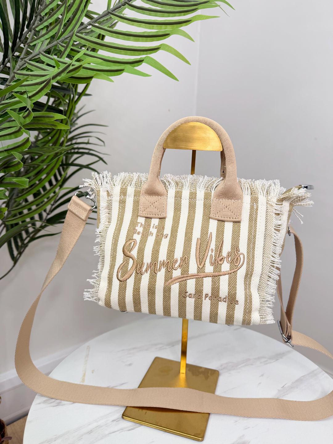 Vicki Stripe Bag - Beige