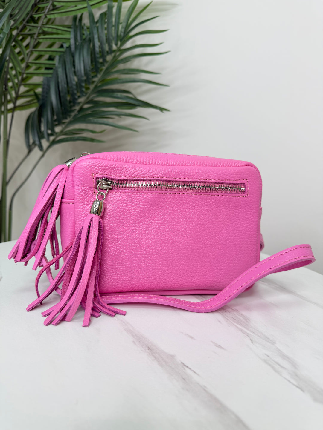 Real Leather Camera Bag - Candy Pink