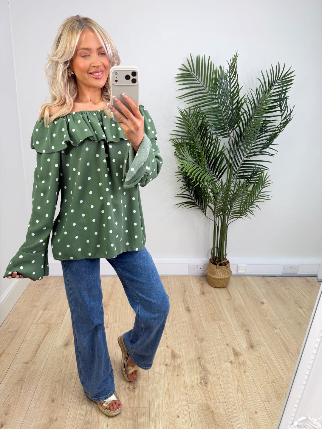 Linda Polka Dot Bardot - Khaki
