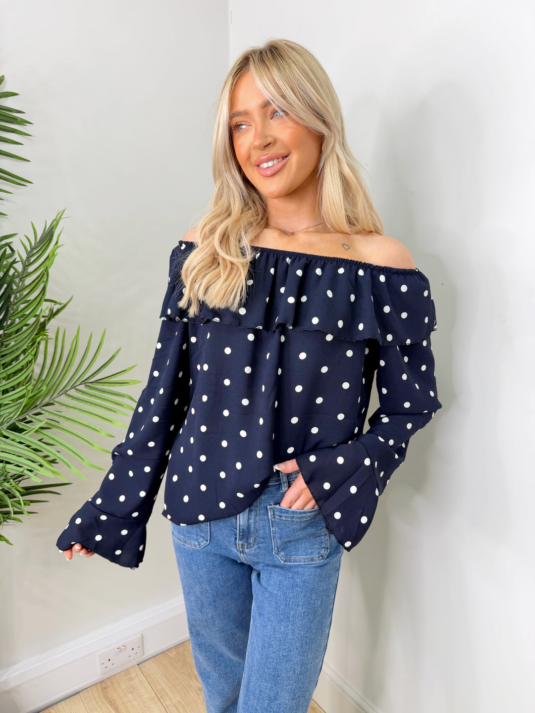 Linda Polka Dot Bardot - Navy