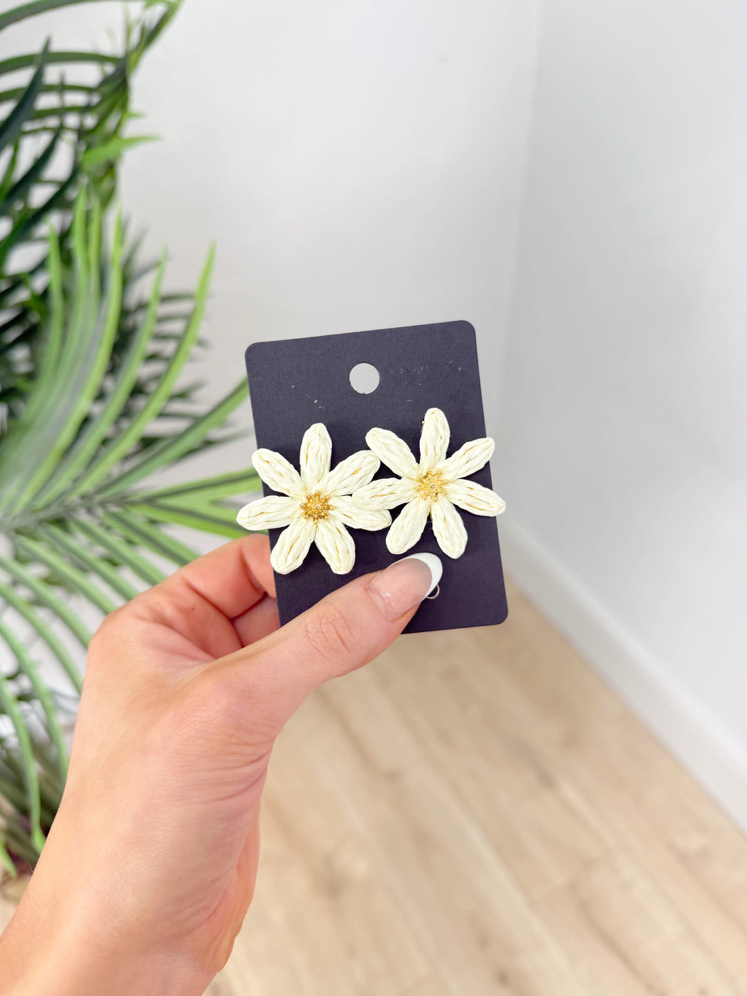 Rattan Flower Earrings - Beige