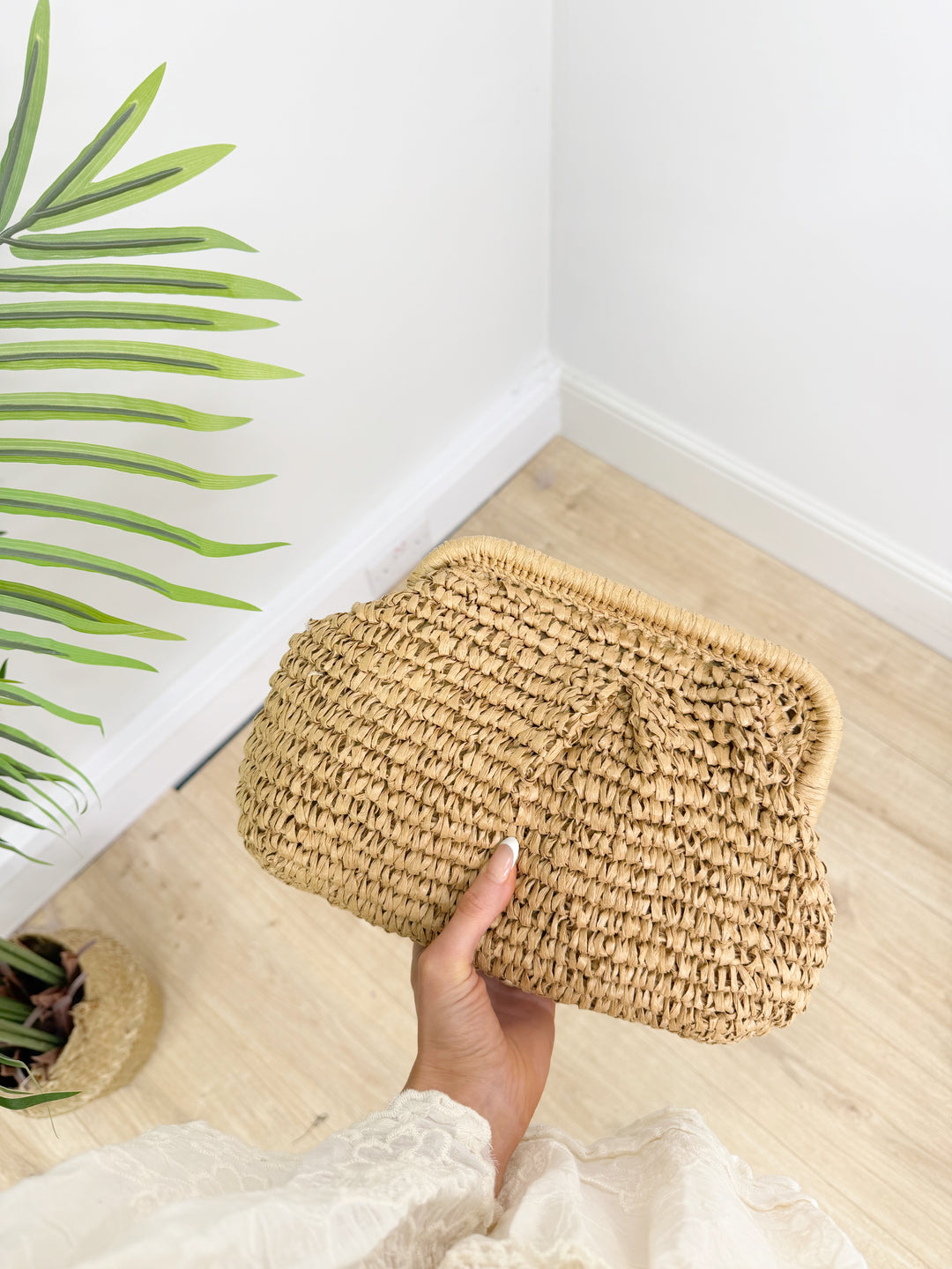 Straw Clutch - Beige