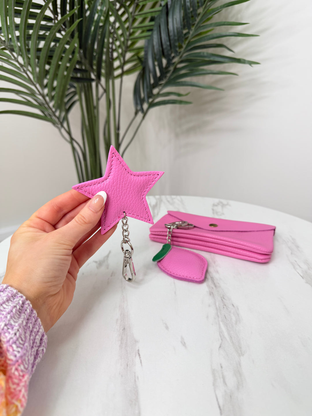 Real Leather Star KeyRing - Candy Pink