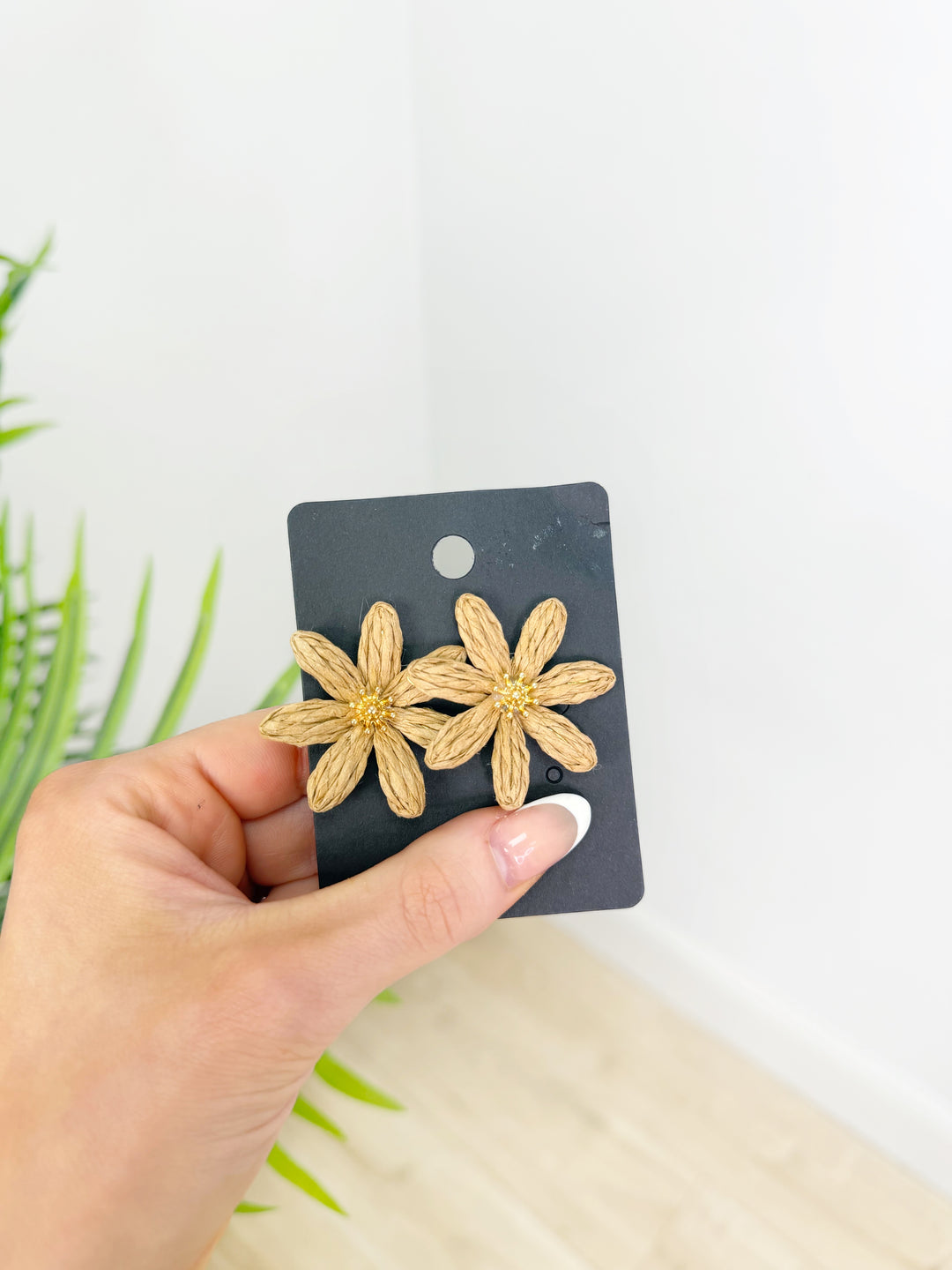 Rattan Flower Earrings - Tan