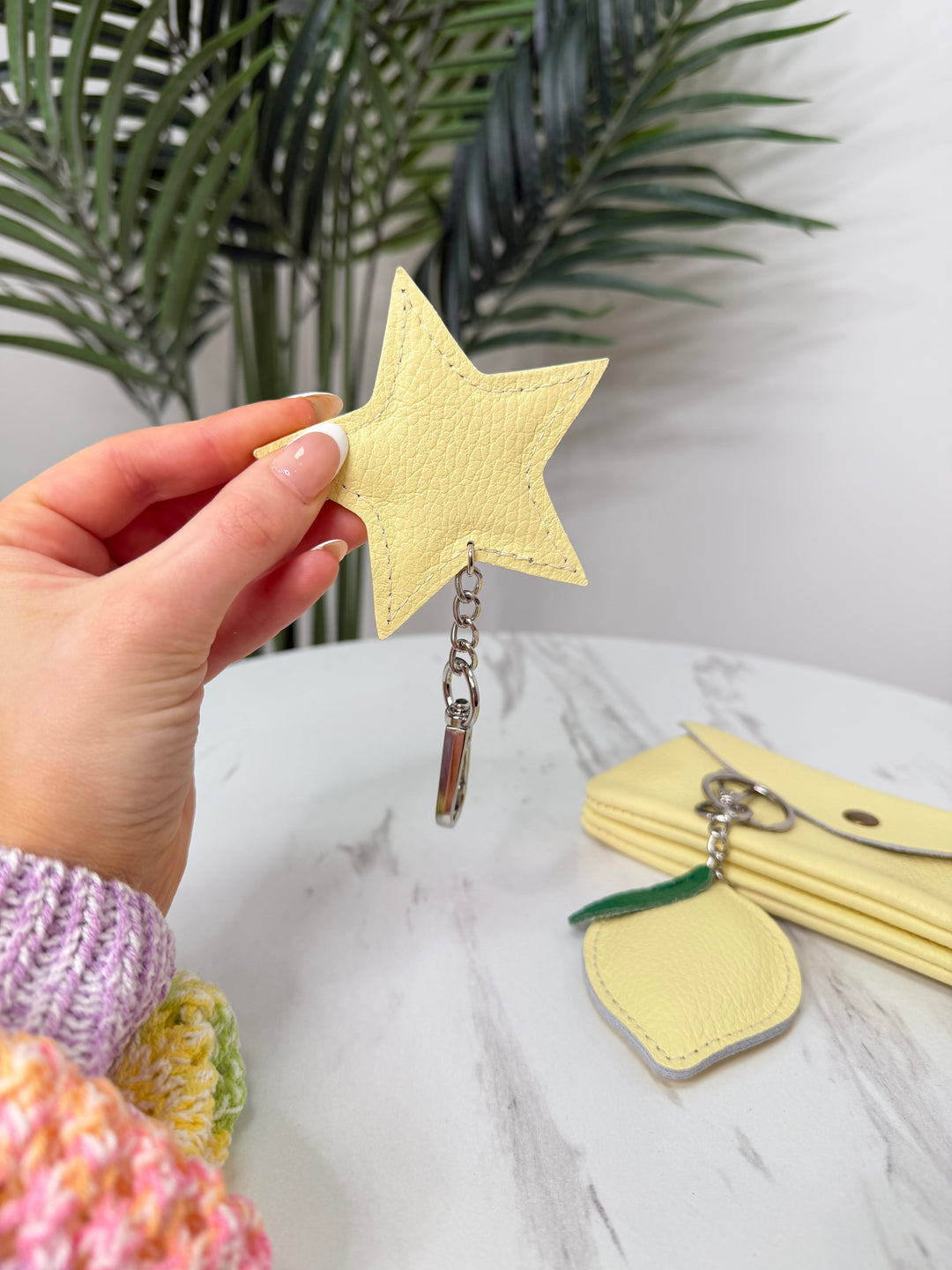Real Leather Star KeyRing - Lemon