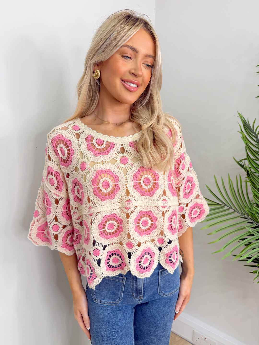 Flower Crochet Top - Pink & Cream