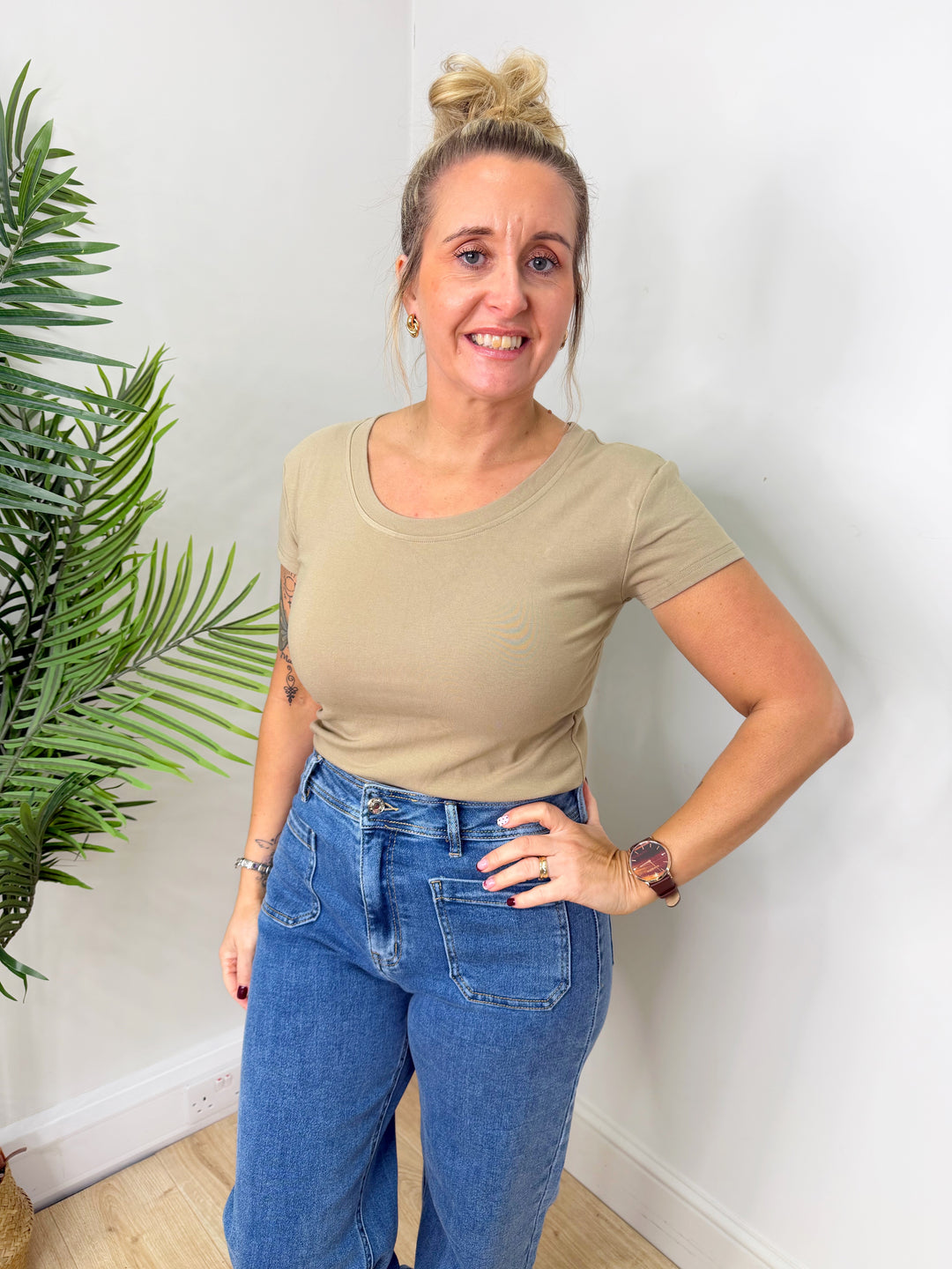 Short Sleeved Basic Top - Beige