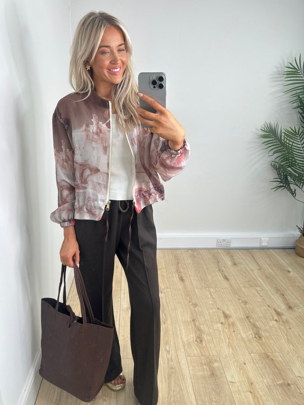 Floral Bomber Jacket - Tan