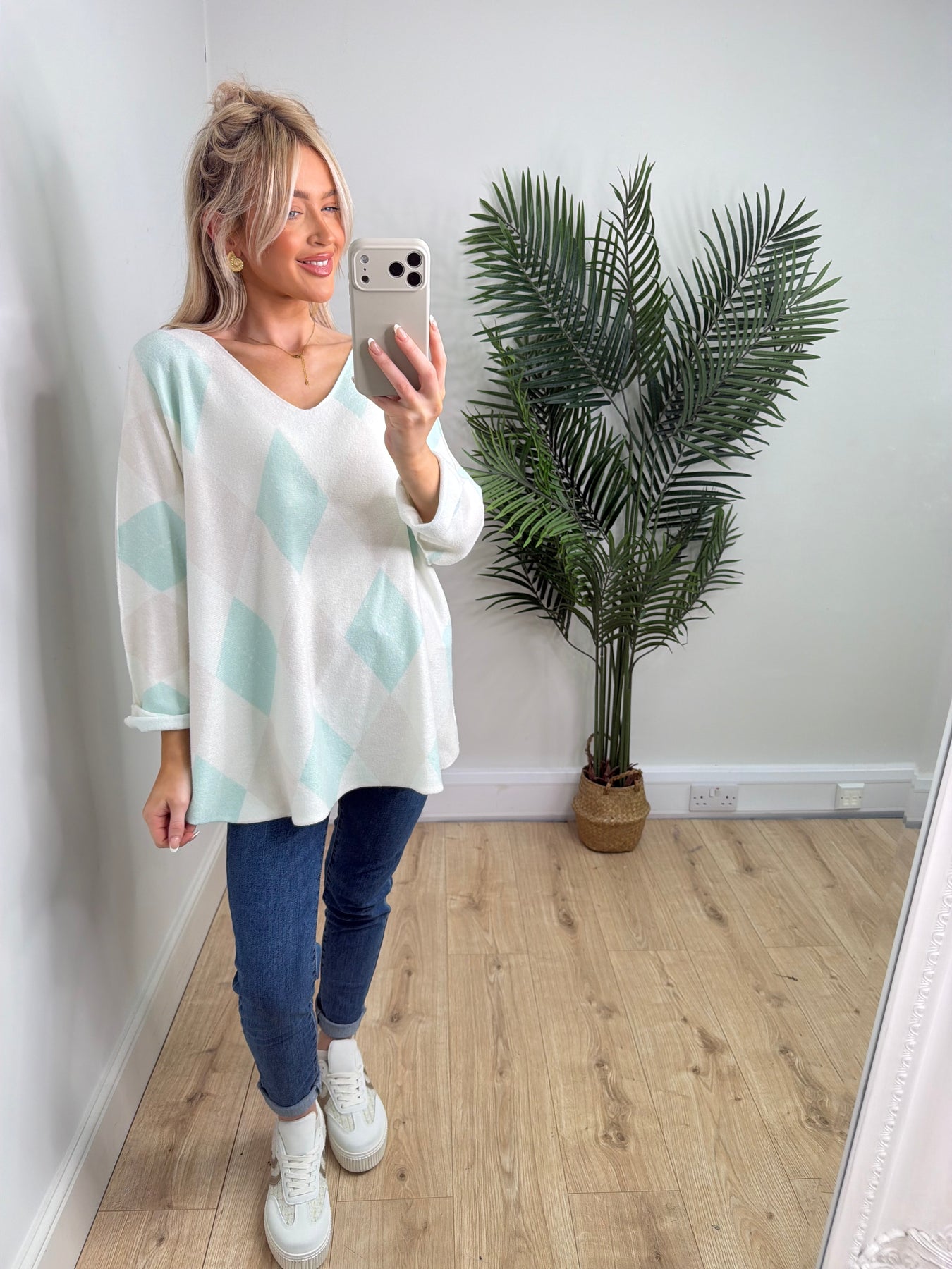 Lora Argyle Soft Knit - Mint