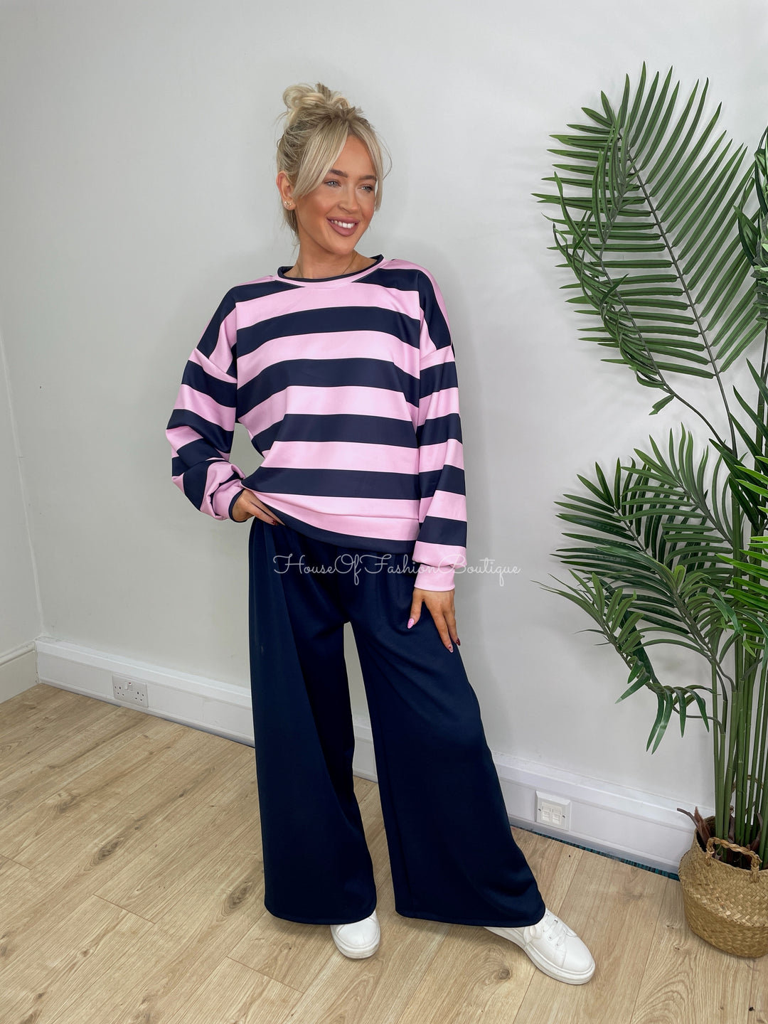 Maria Stripe Two Piece - Pink & Navy