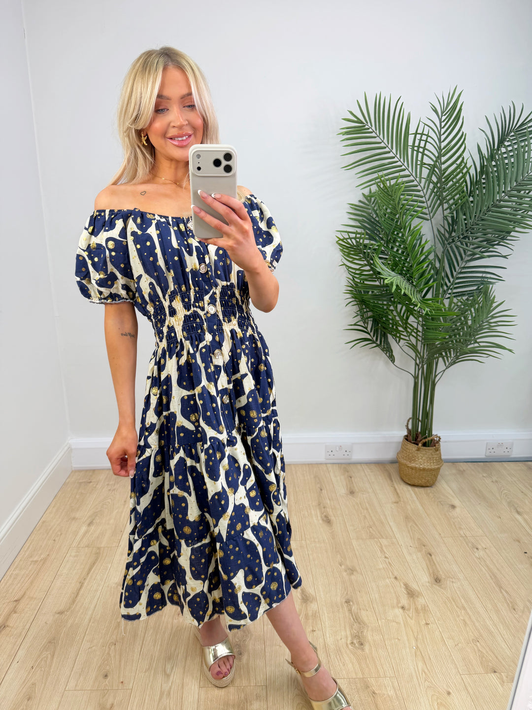 Mariah Dress - Navy Blue & Gold