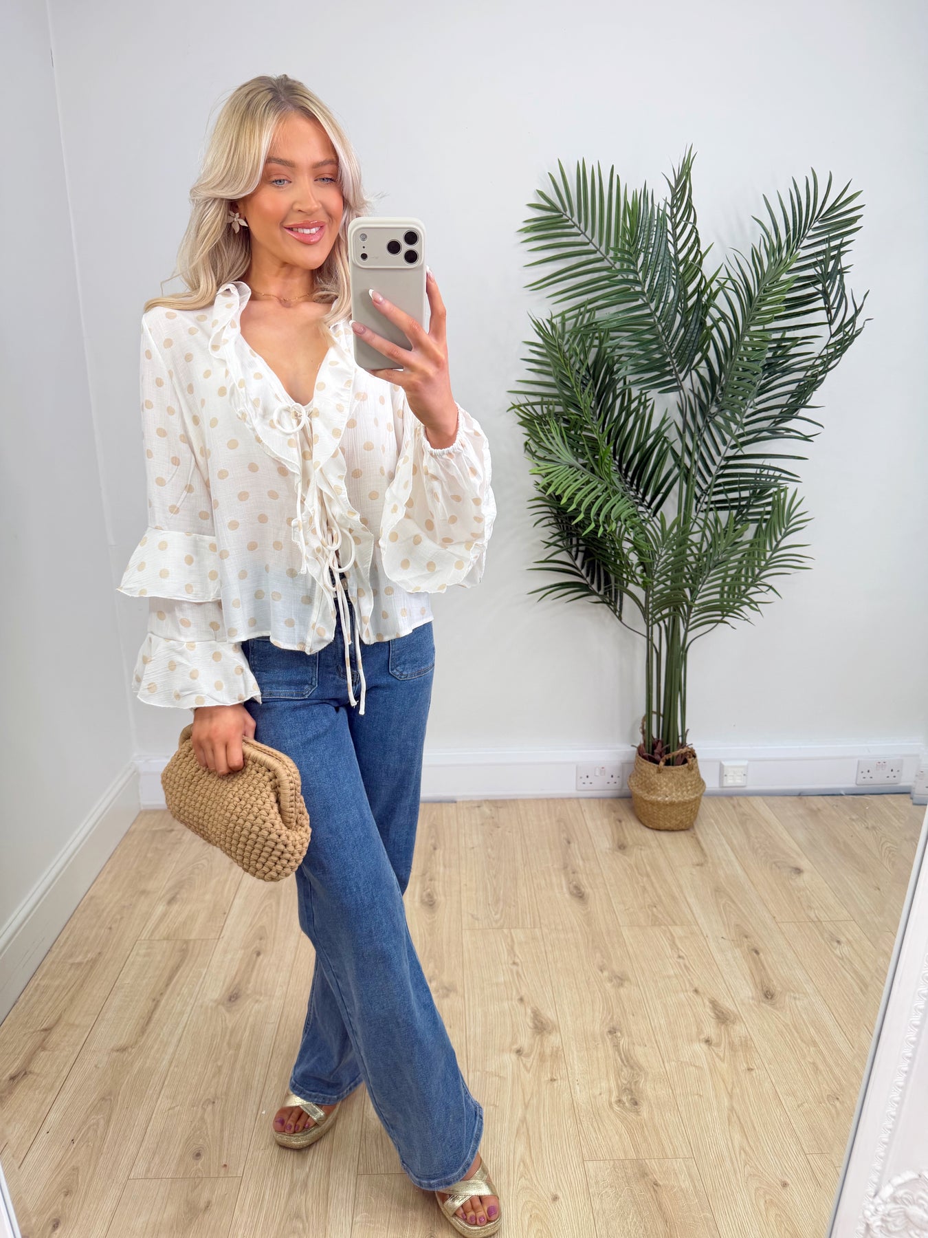 Martha Polka Dot Top - Beige