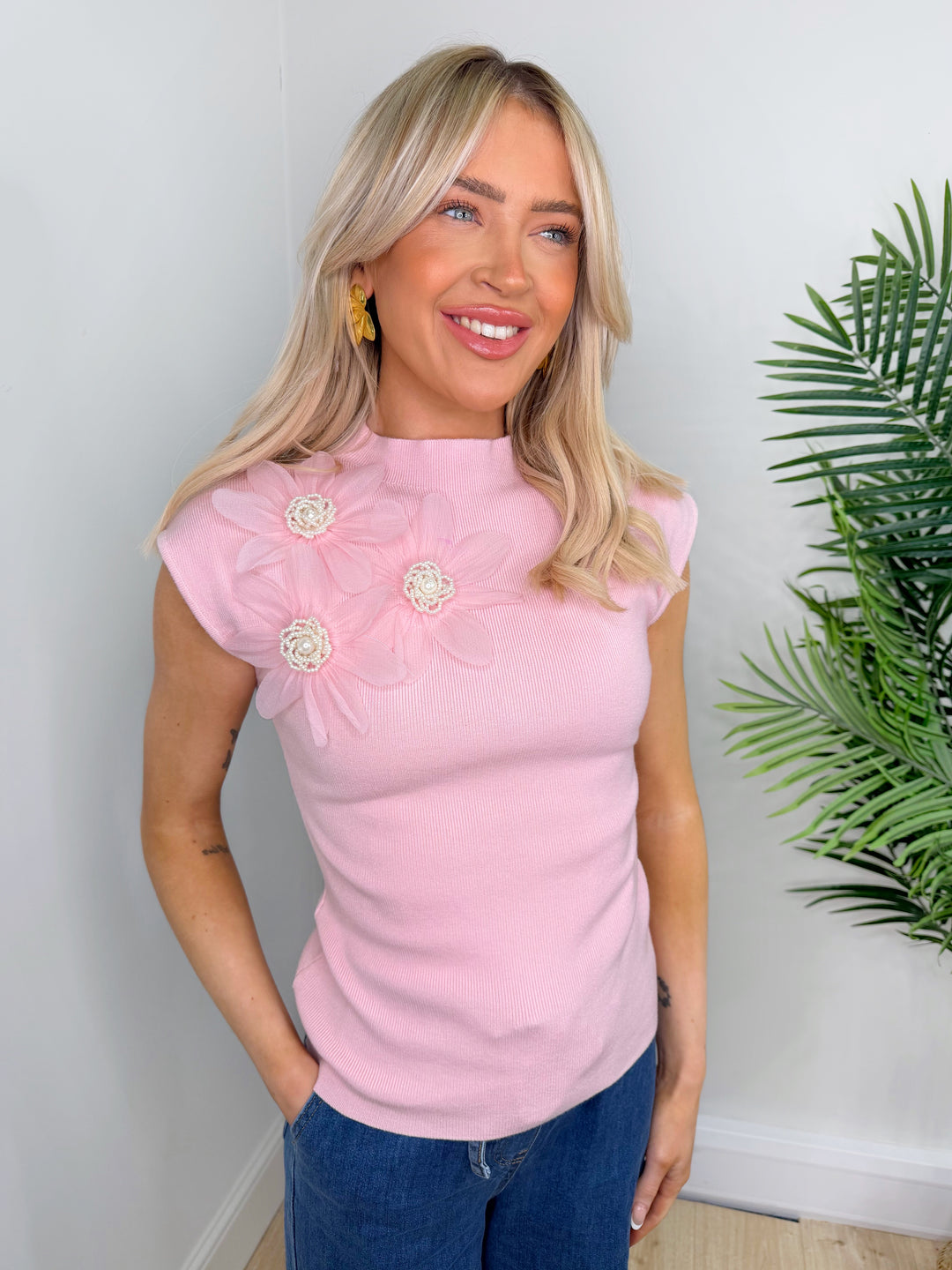 Pansie Flower Top - Baby Pink