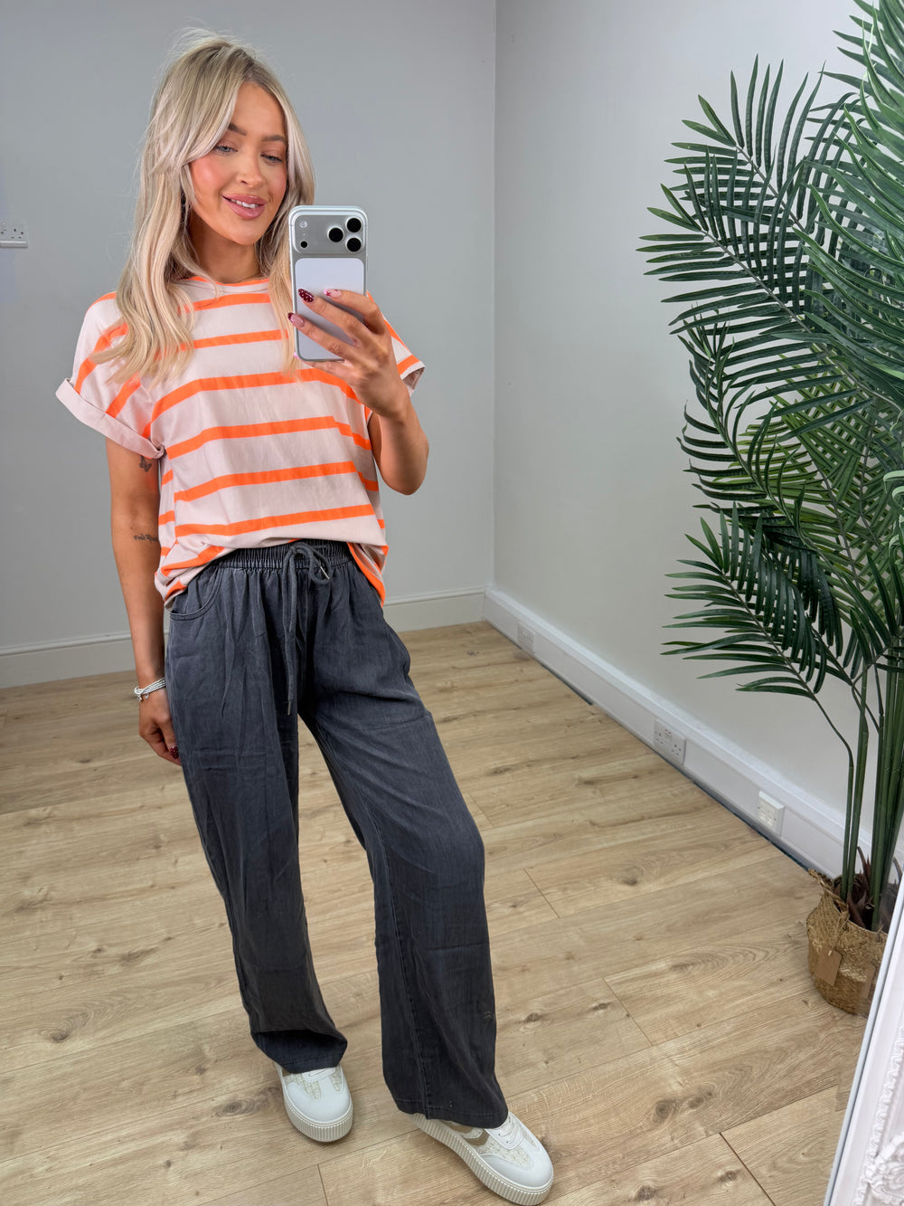 Jessi Tshirt - Orange & Beige
