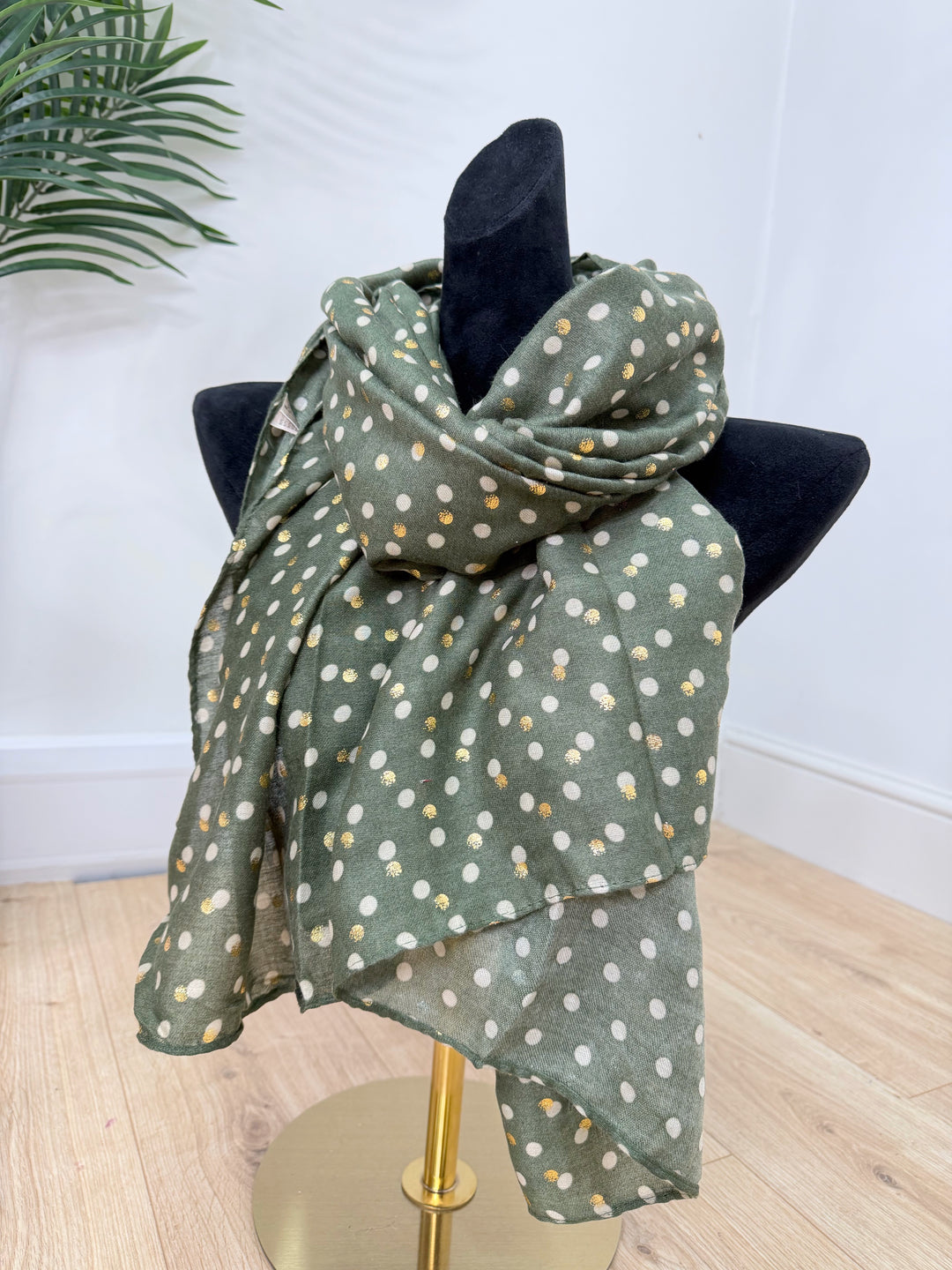 Polka Dot Spring Scarf - Khaki & Gold