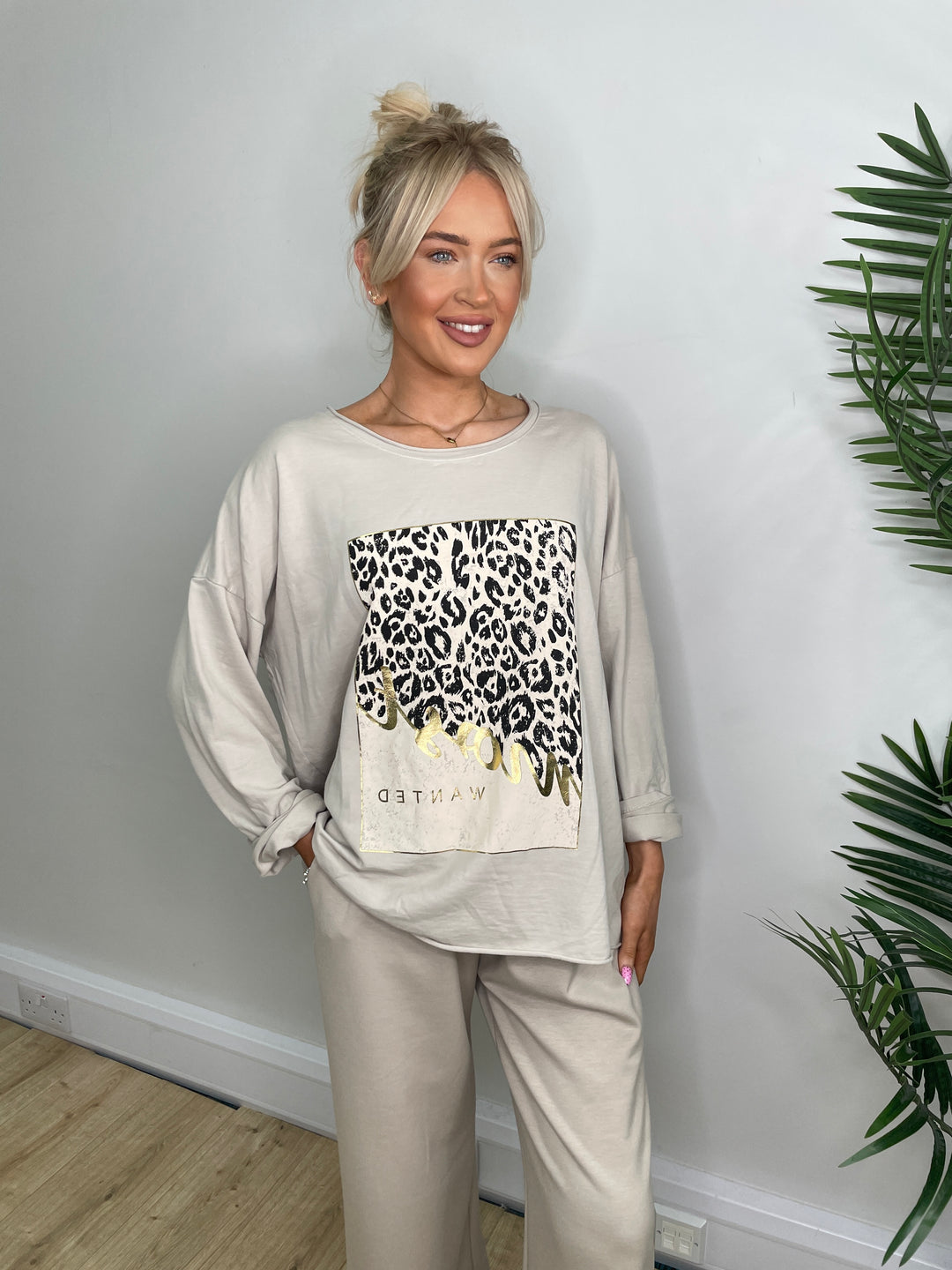 Slogan Patch Loungewear - Beige
