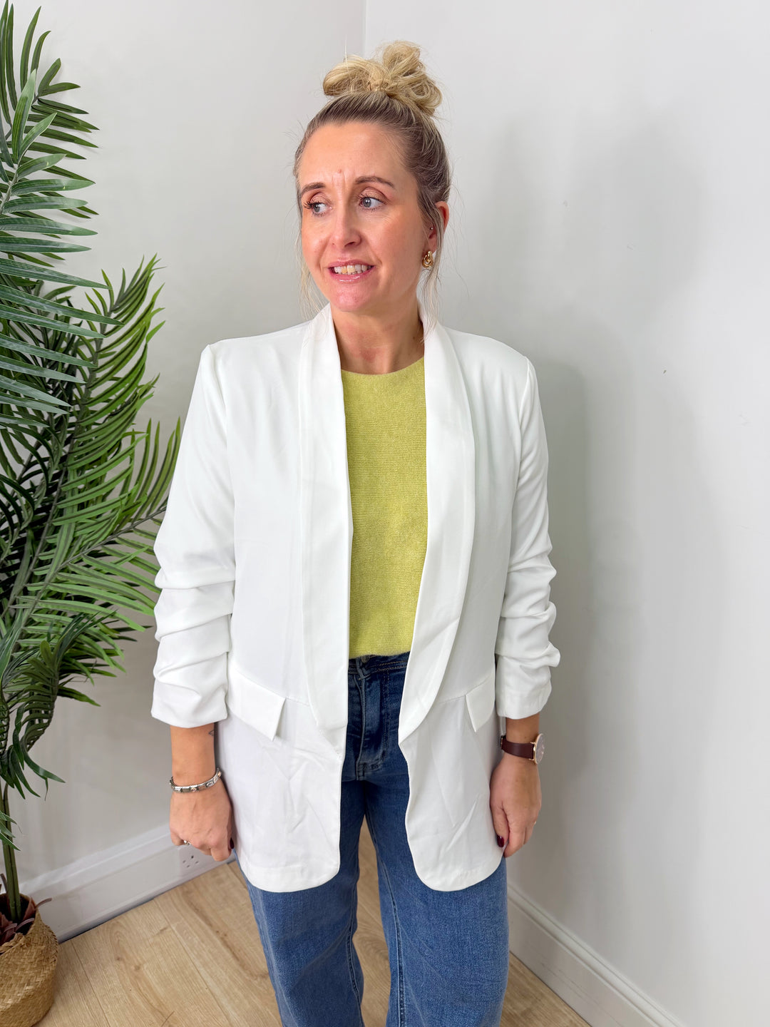 Ruched Blazer - White