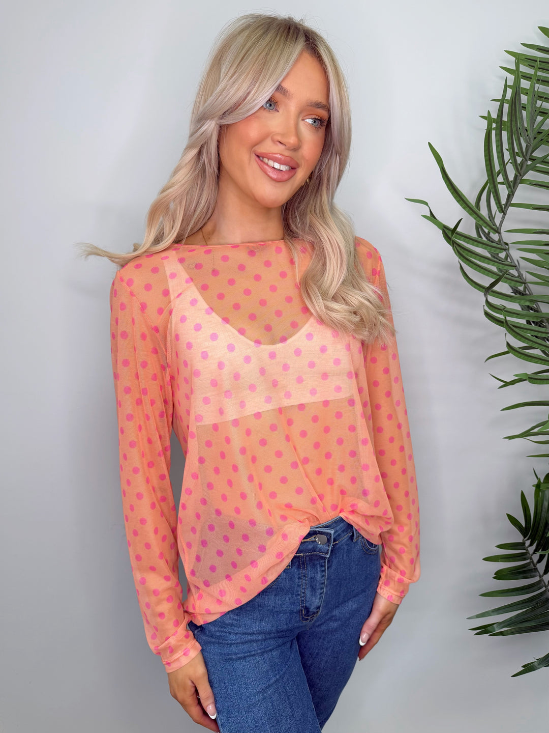 Polka Dot Mesh - Orange & Pink