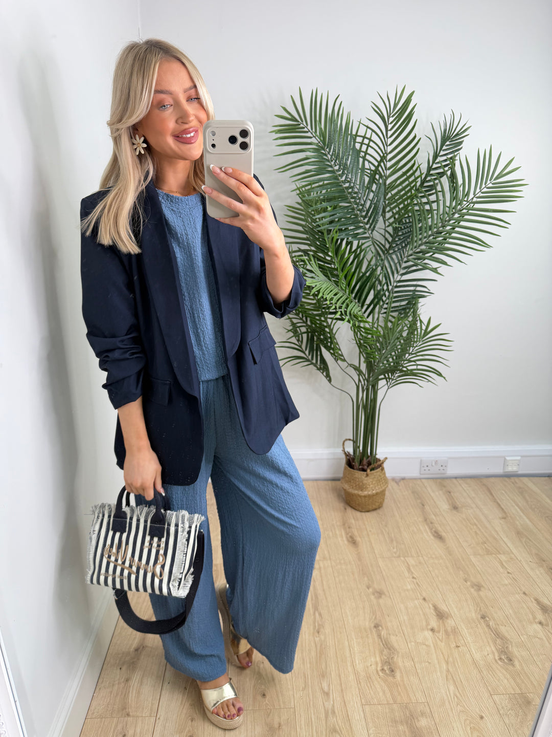 Ruched Blazer - Denim