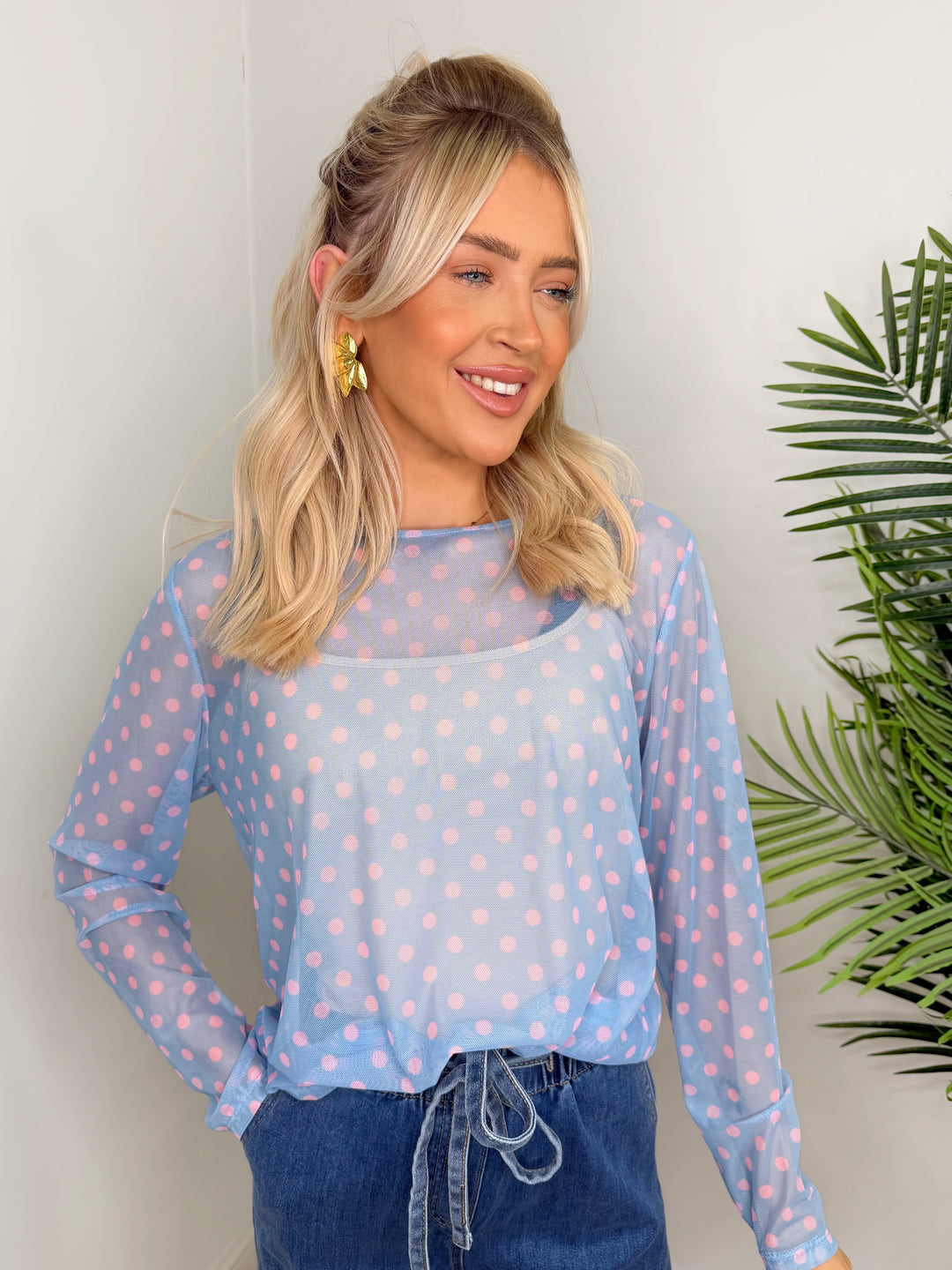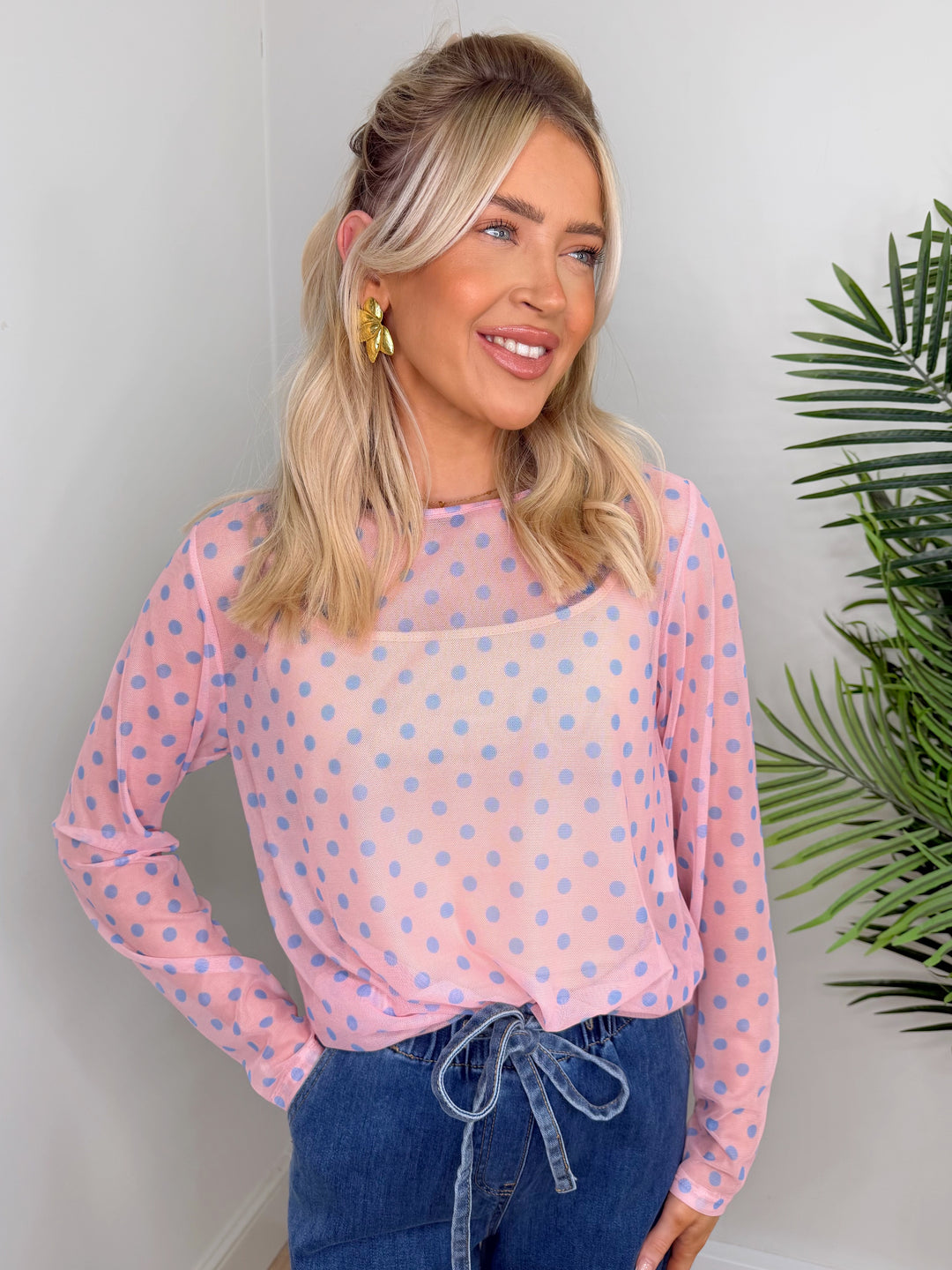 Polka Dot Mesh - Blue & Pink