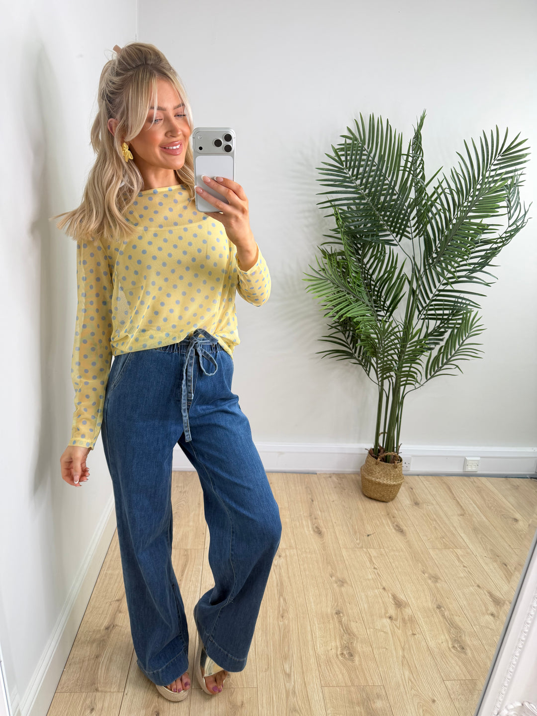 Polka Dot Mesh - Lemon & Blue