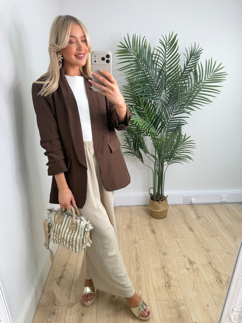 Ruched Blazer - Chocolate