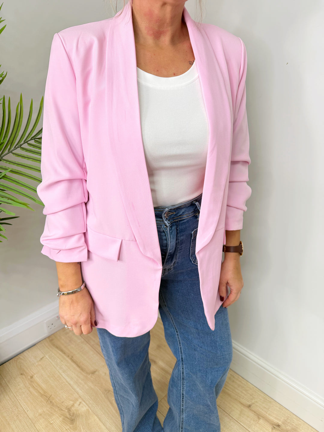 Ruched Blazer - Baby Pink