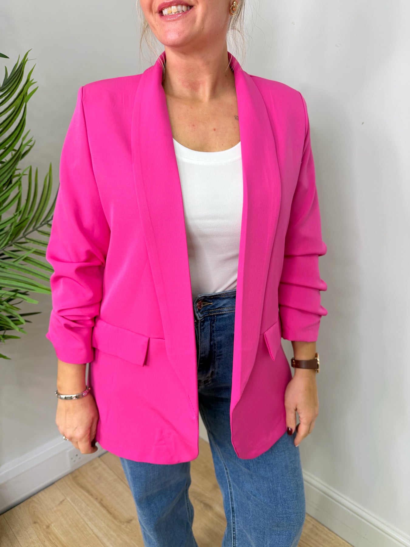NEW Ruched Blazer - Hot Pink