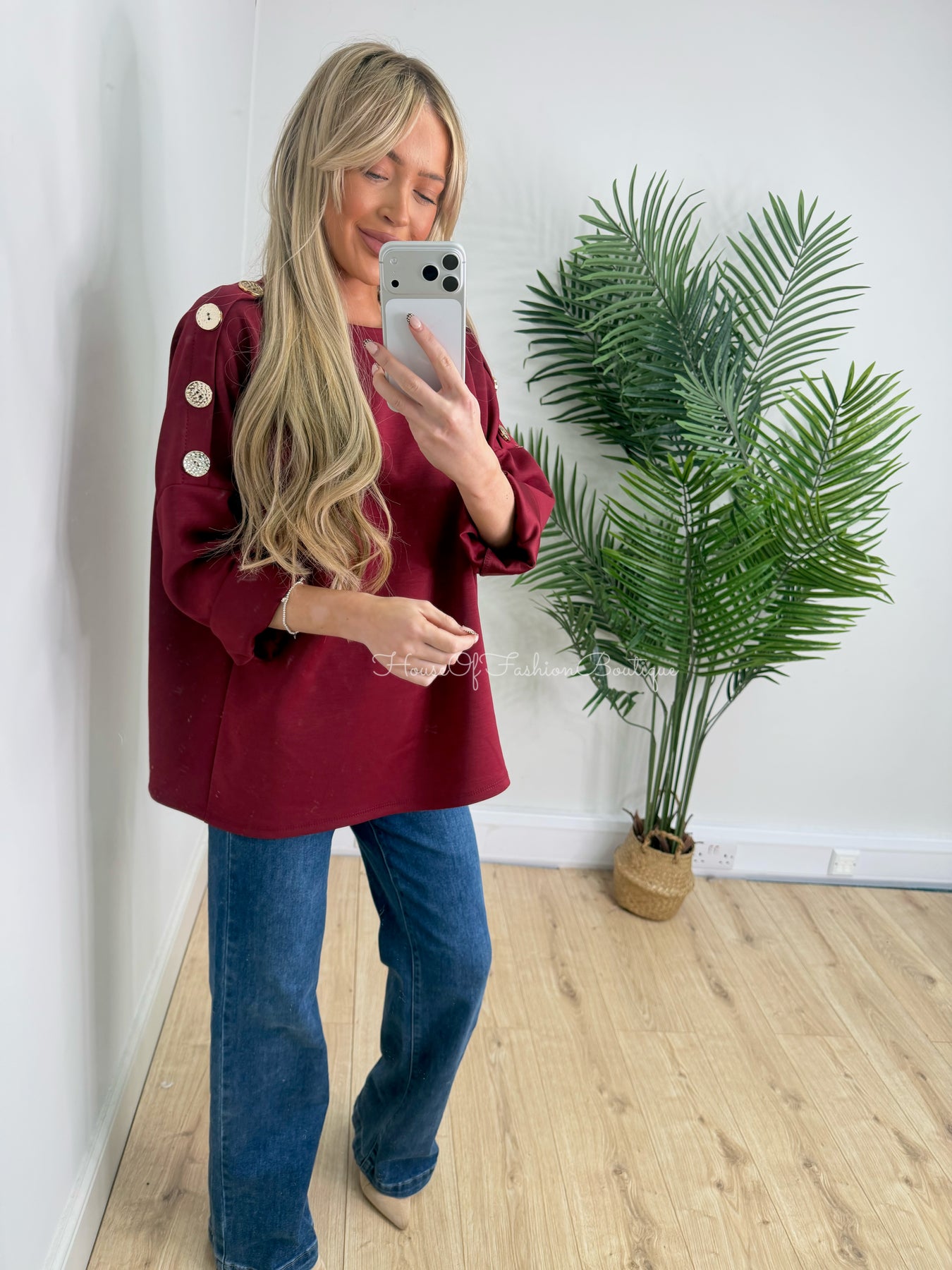 Gold Button Sweatshirt - Wine