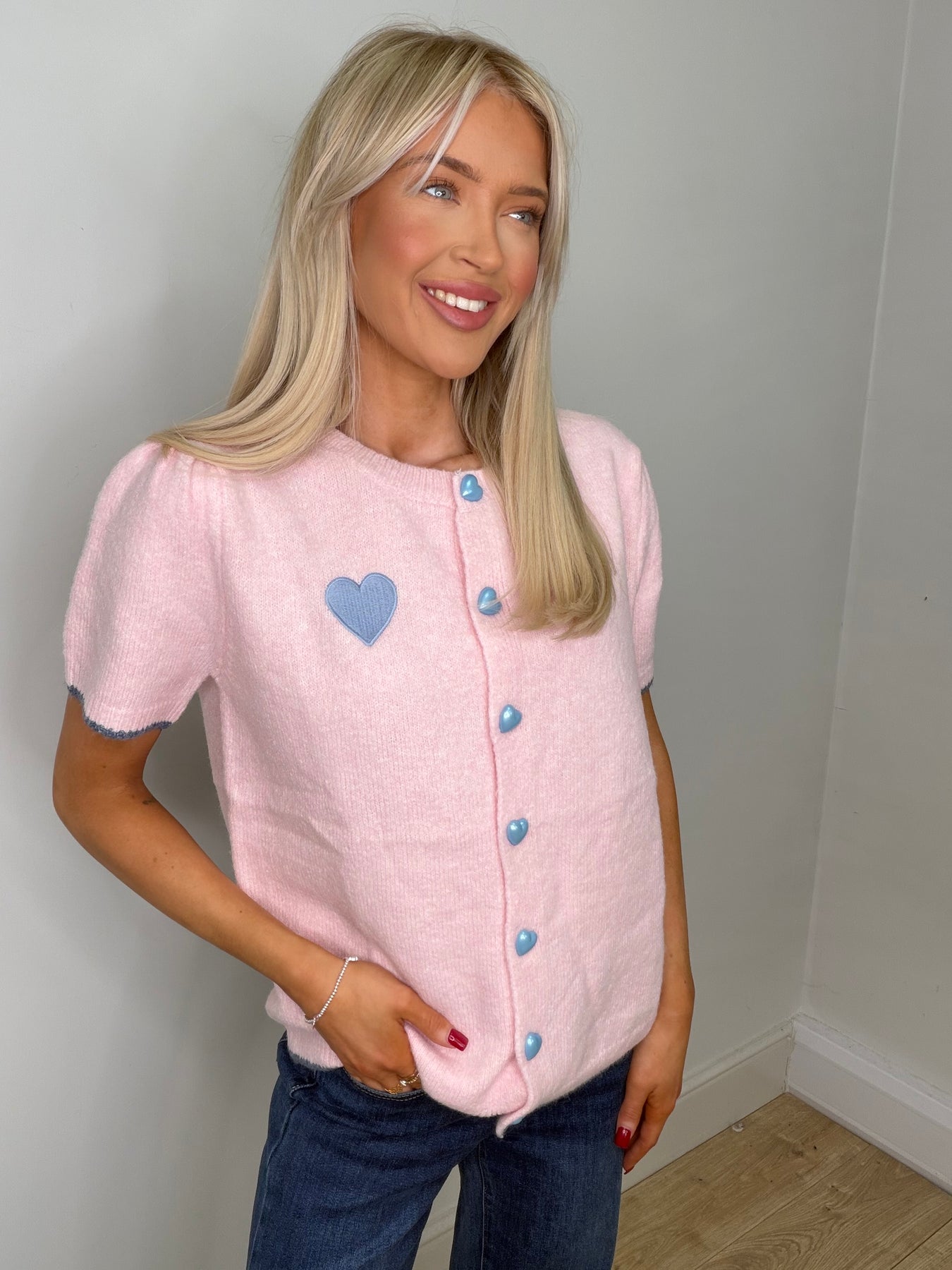 Heart Button Knit - Baby Pink