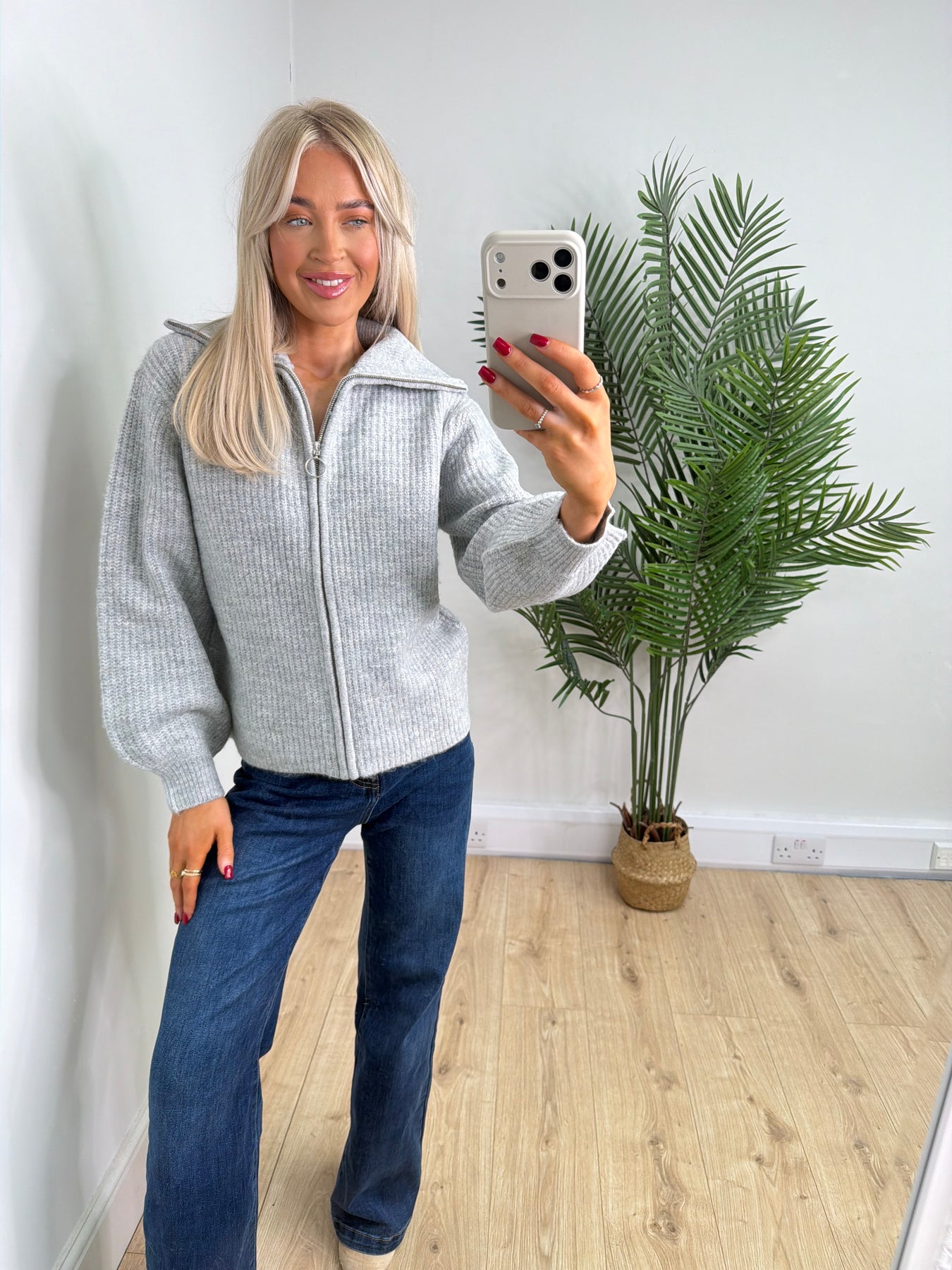 Zara Knitted Zip Knit - Grey