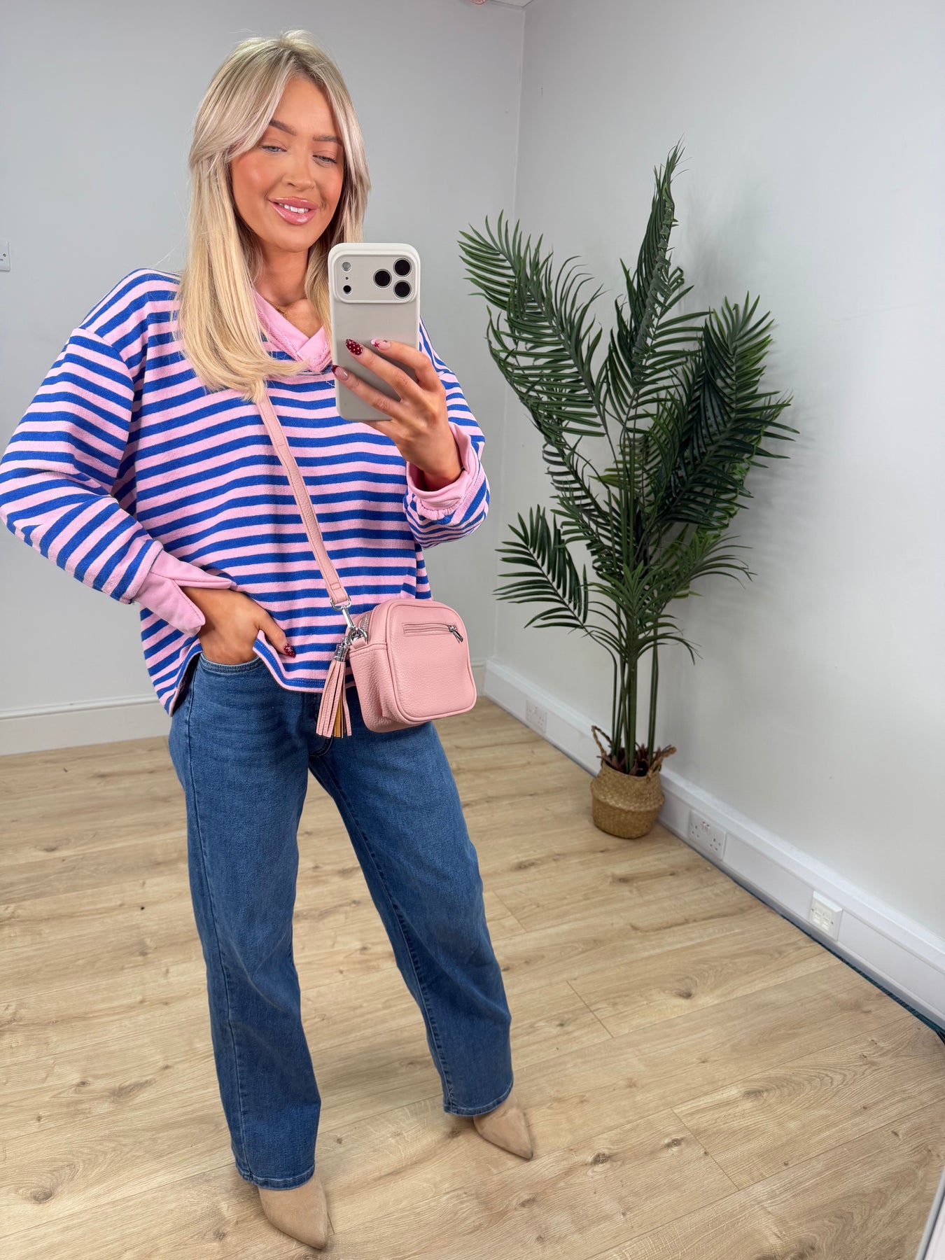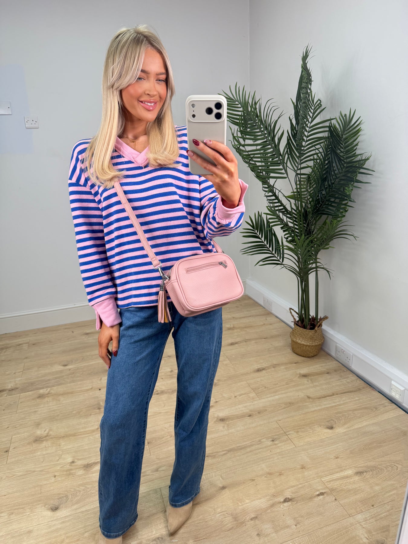 Ava Stripe Sweatshirt - Baby Pink & Royal Blue