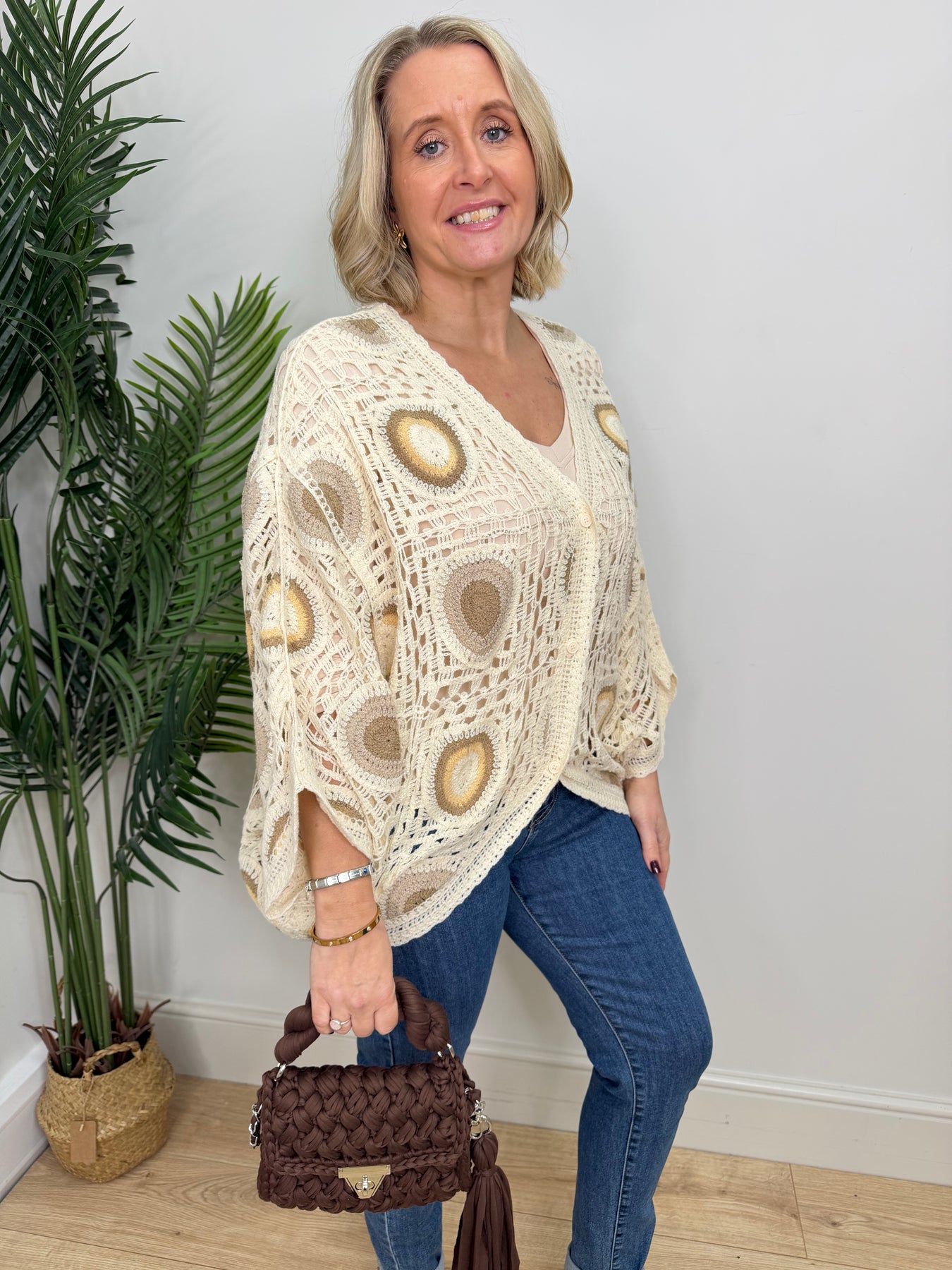 Venice Crochet Cardigan - Mocha & Beige